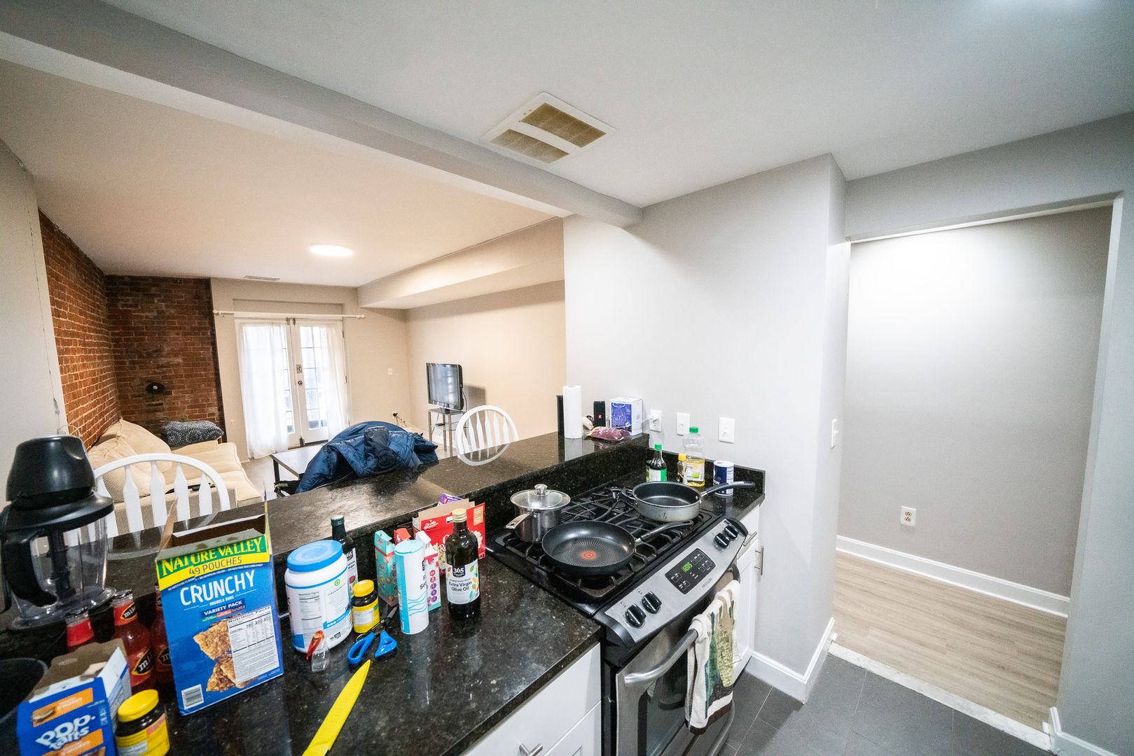 Large open kitchen and living room.